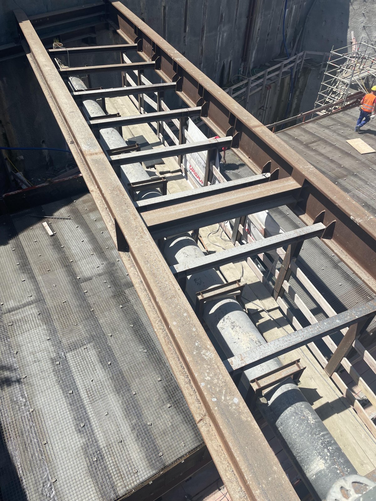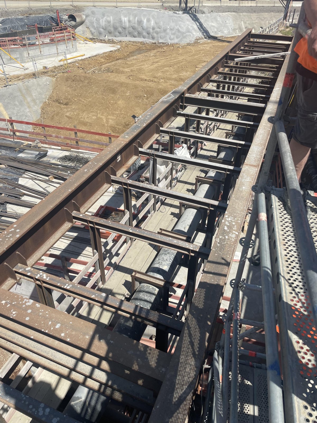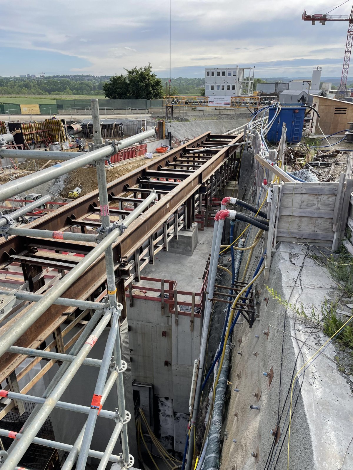 Montage der Kabelbrücke am Flughafen Stuttgart