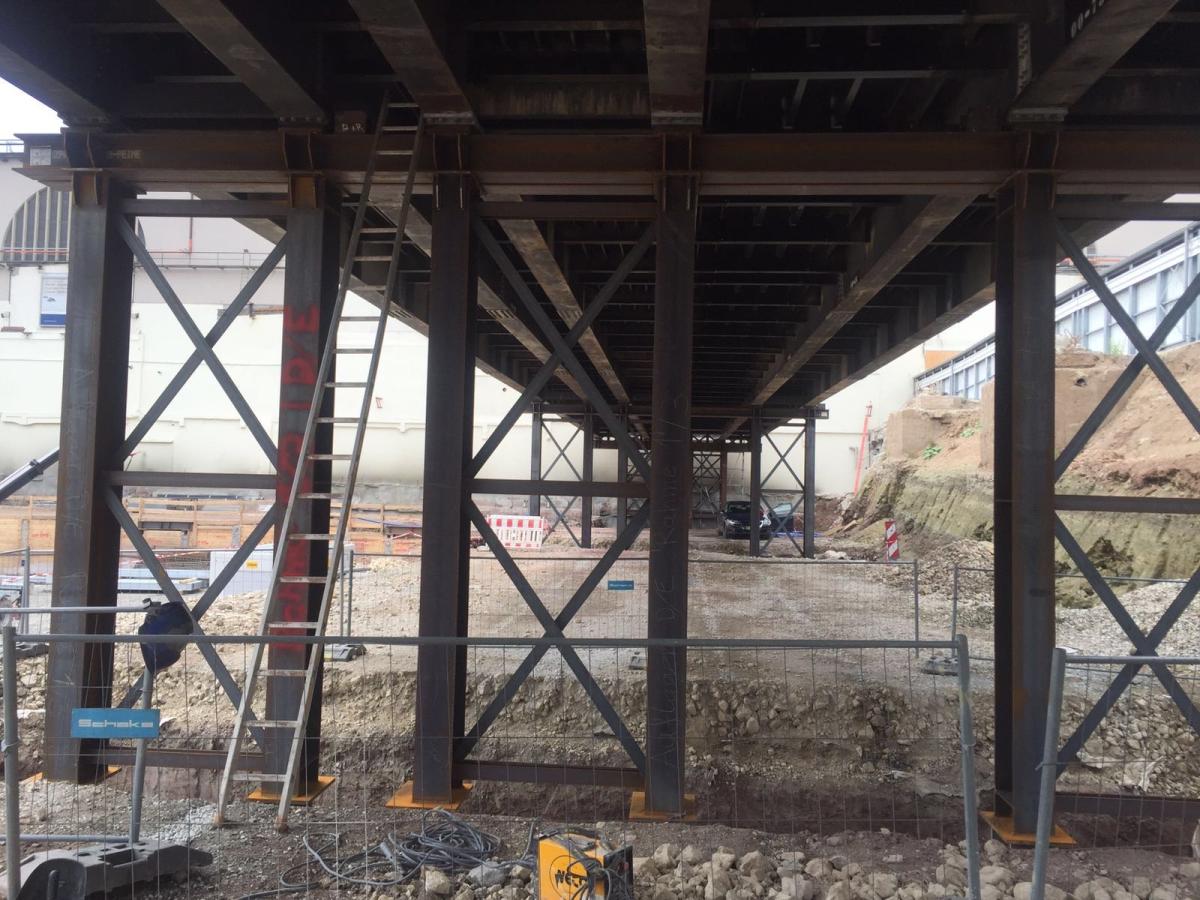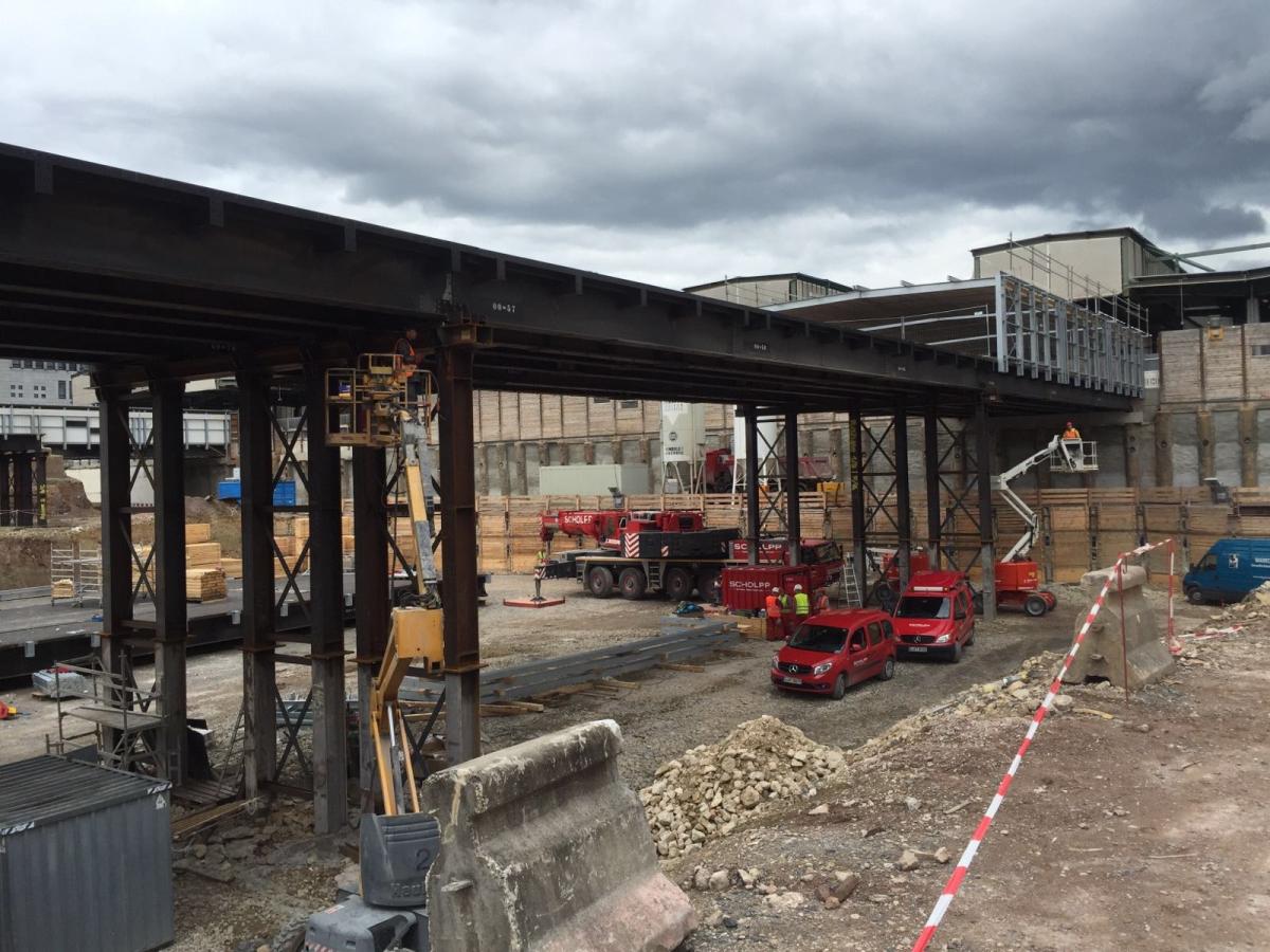 Montage der Kabelbrücke am Flughafen Stuttgart